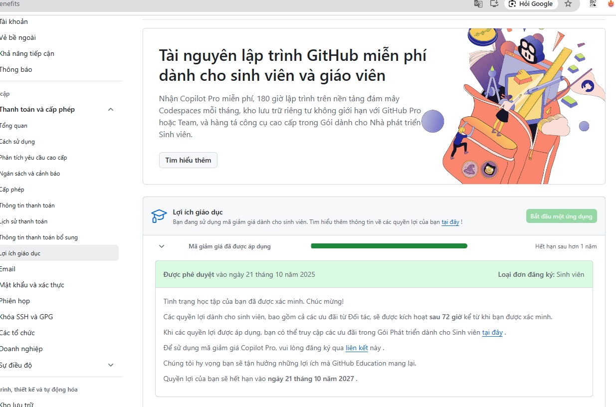 Sản phẩm Nâng cấp GitHub Student chính chủ